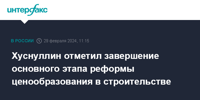 Хуснуллин отметил завершение основного этапа реформы ценообразования в строительстве