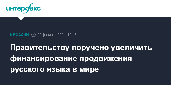 Москва. 29 февраля. INTERFAX.RU - Президент Владимир Путин в послании Федеральному собранию попросил правительство увеличить финансирование программ продвижения русского языка и российской многонациональной культуры, в первую очередь в странах СНГ.