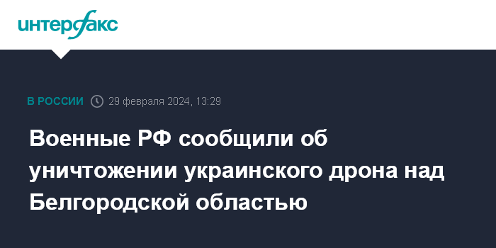Военные РФ сообщили об уничтожении украинского дрона над Белгородской областью