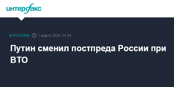 Москва. 1 марта. INTERFAX.RU - Президент Владимир Путин назначил Николая Платонова постоянным представителем России при Всемирной торговой организации (ВТО) в Женеве.