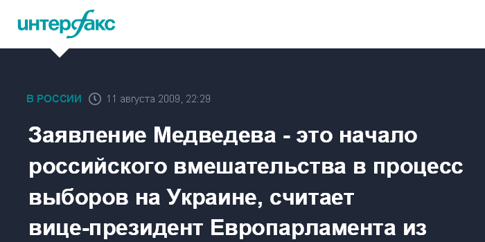 Заявление Медведева - это начало российского вмешательства в процесс выборов на Украине, считает вице-президент Европарламента из Польши
