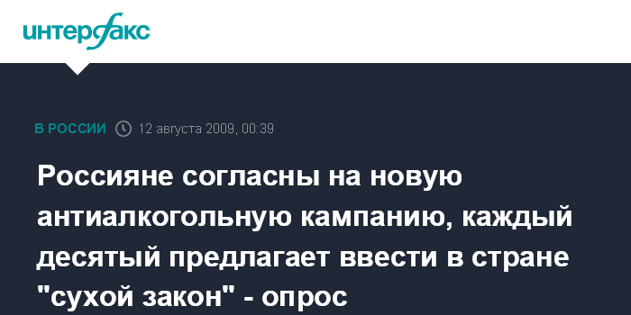 Россияне согласны на новую антиалкогольную кампанию, каждый десятый предлагает ввести в стране "сухой закон" - опрос