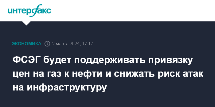 ФСЭГ будет поддерживать привязку цен на газ к нефти и снижать риск атак на инфраструктуру