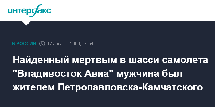 Найденный мертвым в шасси самолета "Владивосток Авиа" мужчина был жителем Петропавловска-Камчатского