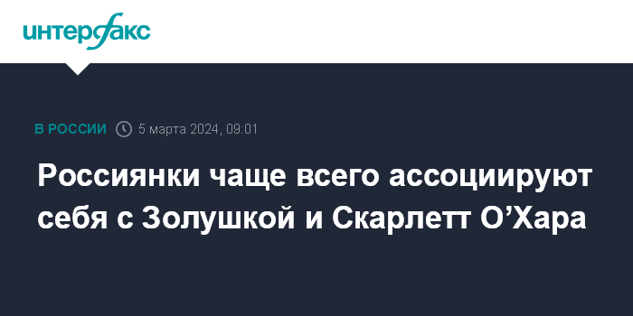 Россиянки чаще всего ассоциируют себя с Золушкой и Скарлетт О’Хара
