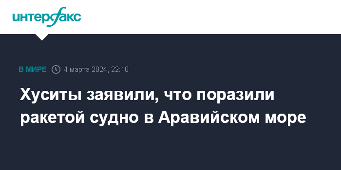 Хуситы заявили, что поразили ракетой судно в Аравийском море