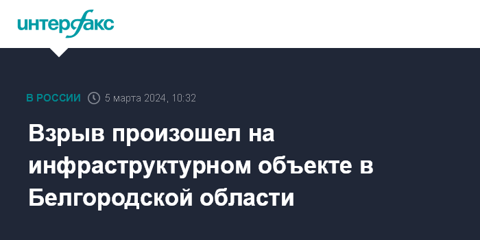 Взрыв произошел на инфраструктурном объекте в Белгородской области
