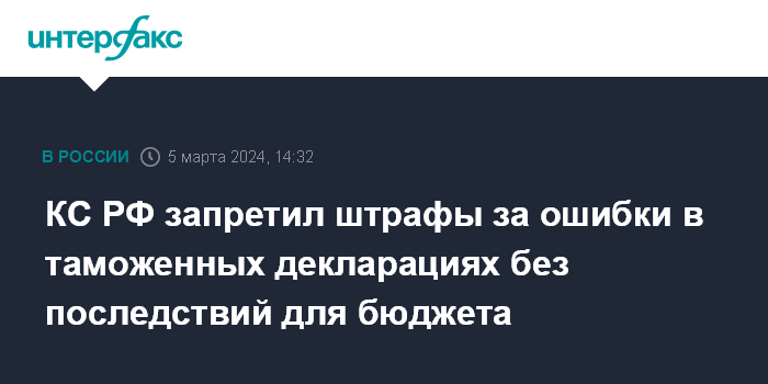 КС РФ запретил штрафы за ошибки в таможенных декларациях без последствий для бюджета