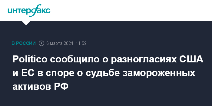 Москва. 6 марта. INTERFAX.RU - США и Евросоюз не могут договориться о том, как использовать заблокированные российские активы в связи ситуацией на Украине: Вашингтон настаивает на полной конфискации средств, а страны Евроcоюза хотят использовать только доходы от активов, сообщает Politico со ссылкой на источники.