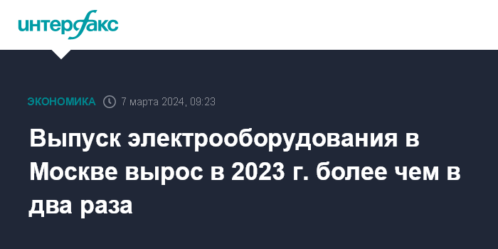 Выпуск электрооборудования в Москве вырос в 2023 г. более чем в два раза
