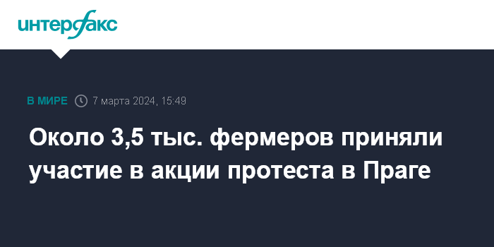 Москва. 7 марта. INTERFAX.RU - Протест аграриев состоялся в четверг в Праге, сообщает Чешское радио.