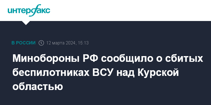 Минобороны РФ сообщило о сбитых беспилотниках ВСУ над Курской областью