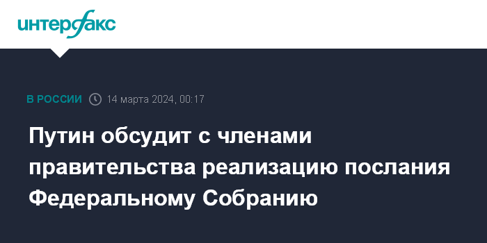 Путин обсудит с членами правительства реализацию послания Федеральному Собранию