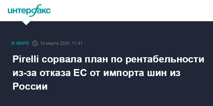 Pirelli сорвала план по рентабельности из-за отказа ЕС от импорта шин из России