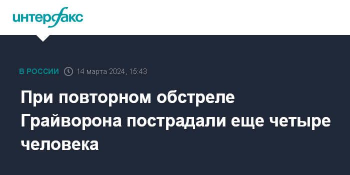 Москва. 14 марта. INTERFAX.RU - Белгородский губернатор Вячеслав Гладков сообщил, что Грайворонский округ обстреляли второй раз за день и снова пострадали люди.