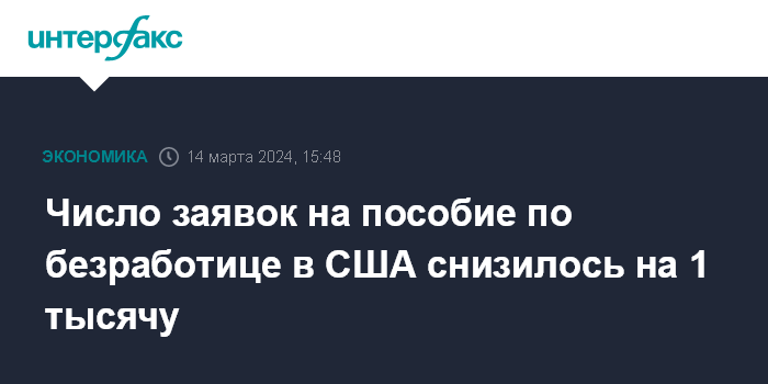 Число заявок на пособие по безработице в США снизилось на 1 тысячу
