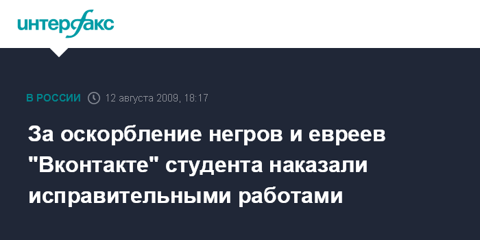 За оскорбление негров и евреев "Вконтакте" студента наказали исправительными работами