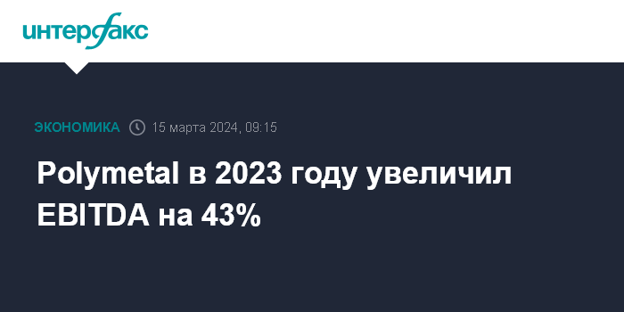 Москва. 15 марта. INTERFAX.RU - Скорректированная EBITDA Polymetal в 2023 году на фоне роста цен на металлы и снижения денежных затрат увеличилась на 43% и составила $1,458 млрд, сообщила компания.