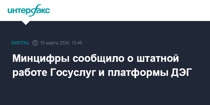 Москва. 15 марта. INTERFAX.RU - Портал государственных и муниципальных услуг (Госуслуги) и федеральная платформа дистанционного электронного голосования (ДЭГ) работают в штатном режиме, справляясь с высокой нагрузкой желающих отдать свой голос на выборах президента РФ, говорится в сообщении Минцифры.
