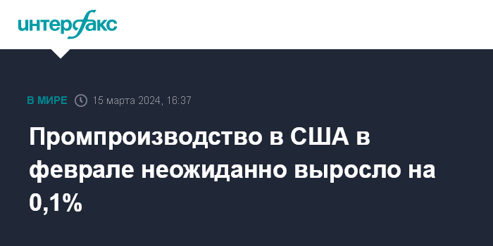 Промпроизводство в США в феврале неожиданно выросло на 0,1%