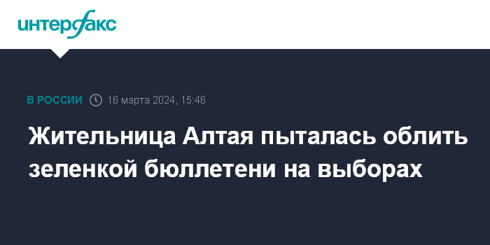 Москва. 16 марта. INTERFAX.RU - Попытка порчи бюллетеней зеленкой предотвращена в субботу на избирательном участке в селе Майма Республики Алтай, сообщается в телеграм-канале Общественной палаты региона.