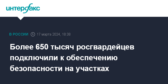 Более 650 тысяч росгвардейцев подключили к обеспечению безопасности на участках