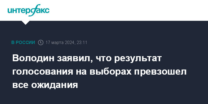 Володин заявил, что результат голосования на выборах превзошел все ожидания