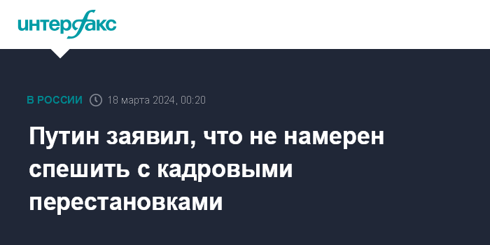 Путин заявил, что не намерен спешить с кадровыми перестановками