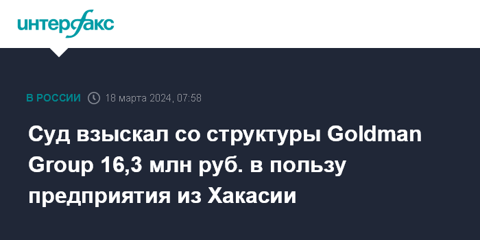 Суд взыскал со структуры Goldman Group 16,3 млн руб. в пользу предприятия из Хакасии