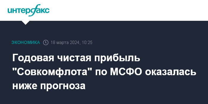 Годовая чистая прибыль "Совкомфлота" по МСФО оказалась ниже прогноза