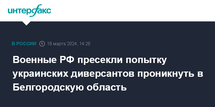 Военные РФ пресекли попытку украинских диверсантов проникнуть в Белгородскую область