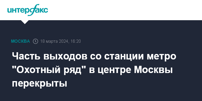 Москва. 18 марта. INTERFAX.RU - Часть выходов со станции столичного метрополитена "Охотный ряд" в центре Москвы перекрыты из-за предстоящего концерта, москвичам рекомендуют пользоваться выходом №4 для прохода на мероприятие, передает корреспондент "Интерфакса" с места события.