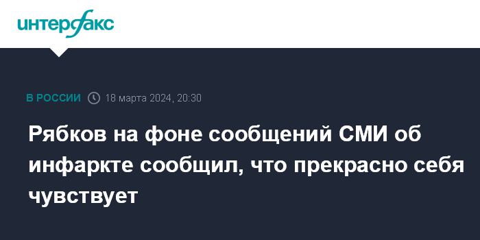Рябков на фоне сообщений СМИ об инфаркте сообщил, что прекрасно себя чувствует