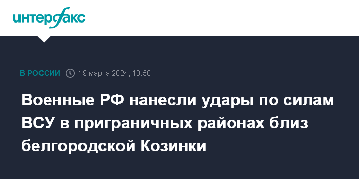Военные РФ нанесли удары по силам ВСУ в приграничных районах близ белгородской Козинки