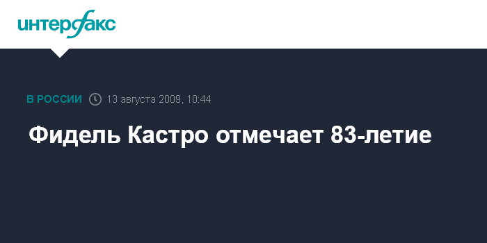 Москва. 13 августа. INTERFAX.RU - Лидеру кубинской революции Фиделю Кастро исполняется в четверг 83 года. По сообщению агентства ЭФЭ, жители Кубы не планируют больших торжеств в связи с этим событием. Отчасти это связано с экономическим кризисом, обрушившимся на страну: на Кубе пустуют многие магазины и продуктовые рынки. Тем не менее, Кастро уже получил несколько подарков от кубинцев. Так, в субботу в Гаване состоялась презентация "Словаря размышлений", в котором содержится почти 2 тыс. цитат из выступлений и интервью Кастро.