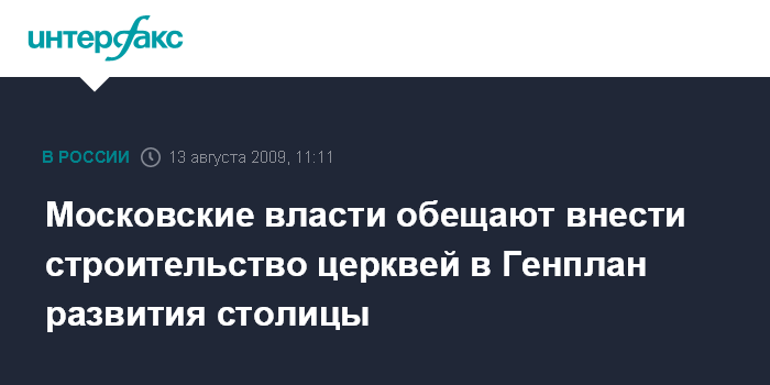 Московские власти обещают внести строительство церквей в Генплан развития столицы