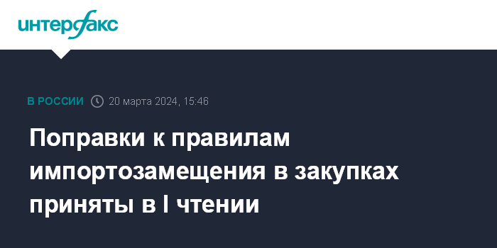 Поправки к правилам импортозамещения в закупках приняты в I чтении