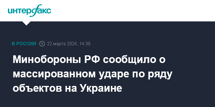 Москва. 22 марта. INTERFAX.RU - Российские военные в пятницу нанесли массированный удар оружием большой дальности по украинским объектам, заявили в Минобороны РФ.