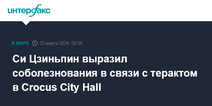 Си Цзиньпин выразил соболезнования в связи с терактом в Crocus City Hall
