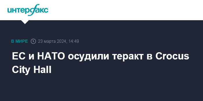 Москва. 23 марта. INTERFAX.RU - В Евросоюзе и НАТО выступили с осуждением теракта в концертном зале Crocus City Hall.