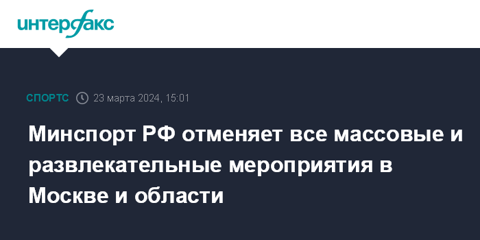 Минспорт РФ отменяет все массовые и развлекательные мероприятия в Москве и области