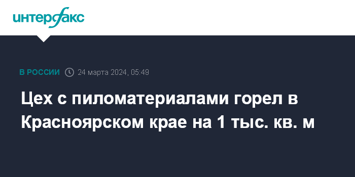 Москва. 24 марта. INTERFAX.RU - Возгорание произошло в сушильном цеху с пиломатериалами в Богачанском районе Красноярского края, сообщает пресс-служба ГУ МЧС по краю.