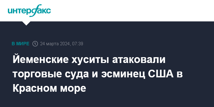 Йеменские хуситы атаковали торговые суда и эсминец США в Красном море