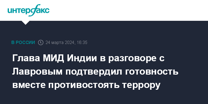 Глава МИД Индии в разговоре с Лавровым подтвердил готовность вместе противостоять террору