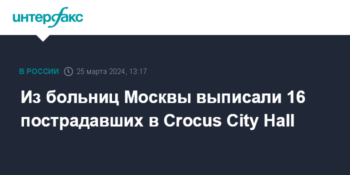 Из больниц Москвы выписали 16 пострадавших в Crocus City Hall