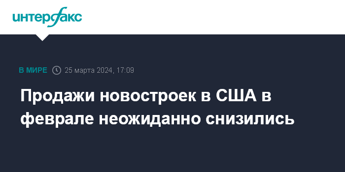 Продажи новостроек в США в феврале неожиданно снизились