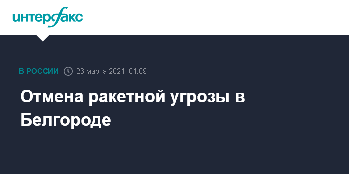 Москва. 26 марта. INTERFAX.RU - Ракетная опасность отменена в Белгороде и Белгородском районе, сообщает мэрия города.