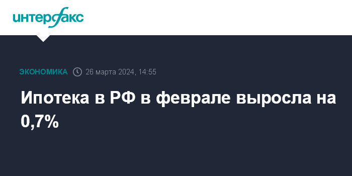 Москва. 26 марта. INTERFAX.RU - Российские банки, по предварительным данным, в феврале незначительно ускорили рост ипотечного портфеля, до 0,7% с 0,6% в январе, что соответствует ожиданиям ЦБ по охлаждению рынка (прогноз по росту на 2024 год - 7-12%), говорится в обзоре регулятора о динамике развития банковского сектора.