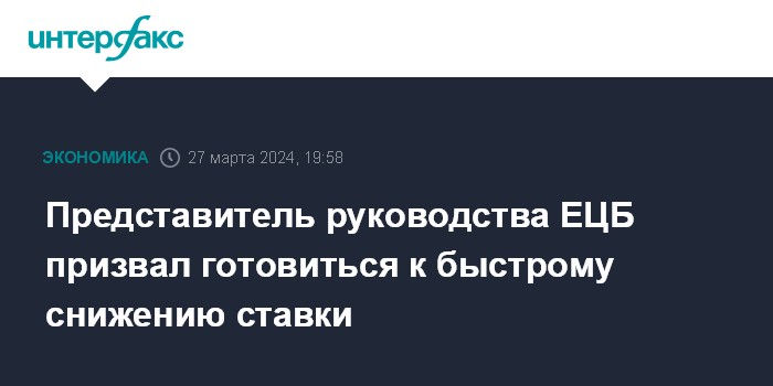 Представитель руководства ЕЦБ призвал готовиться к быстрому снижению ставки