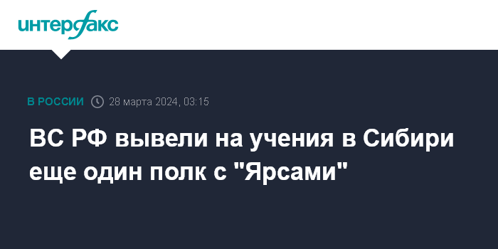27 марта министерство заявило о выходе в рамках учений на маршруты патрулирования полка с "Ярсами".